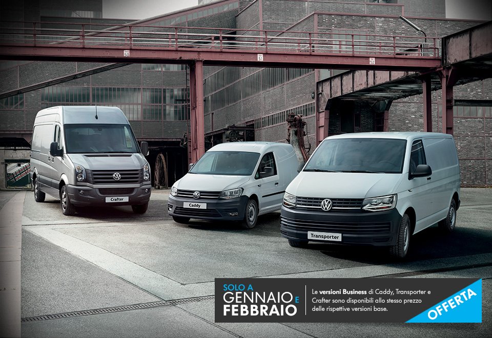 Le versioni Business di Caddy, Transporter e Crafter sono disponibili allo stesso prezzo del rispettivo allestimento base; quando? Solo a gennaio e febbraio.