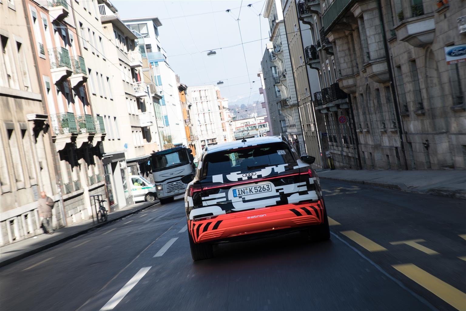 Audi e-tron è un large SUV caratterizzato dalla ricarica ultra rapida a 150 kW, in grado di ripristinare l‘80% d’autonomia in meno di 30 minuti. Al powertrain elettrico, che porta in dote una prontezza d’erogazione e performance degne di una supercar, si accompagnano una generosa abitabilità. Infatti si possono ospitare cinque persone nel massimo comfort, e la trazione quattro, per la prima volta integralmente a gestione elettronica. Audi e-tron sarà la prima vettura del Marchio equipaggiata con funzionalità acquistabili a richiesta attraverso l’app myAudi. I Clienti potranno infatti attivare in un momento successivo alla consegna diverse funzioni relative all’illuminazione, all‘assistenza alla guida o all‘infotainment. La vettura verrà prodotta nello stabilimento Audi di Bruxelles, dove oggi viene costruita la compatta