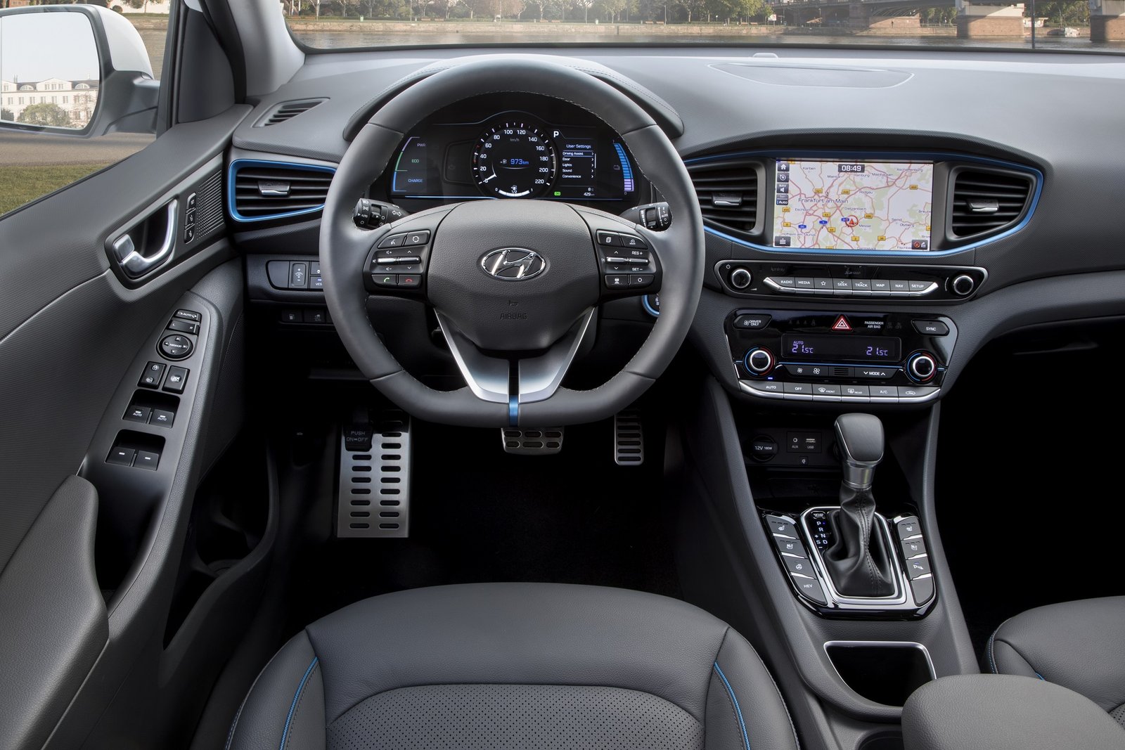 La nuova Hyundai Ioniq 2017 rafforza ulteriormente l’esperienza di guida elettrica attraverso le funzioni dedicate sullo schermo ad alta risoluzione touch da 8’’. L’indicatore ECO misura l’efficienza di guida complessiva. La Charge Reservation è invece una funzione creata per la guida elettrica che permette di programmare i tempi di ricarica in base all’orario di partenza. Il sistema di navigazione include inoltre connettività avanzate come Apple CarPlay, Android Auto, servizi LIVE e l’innovativo sistema di ricarica wireless (Qi standard) per smartphone.