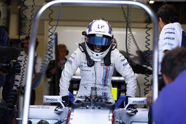 Susie Wolff mentre sale a bordo della Williams