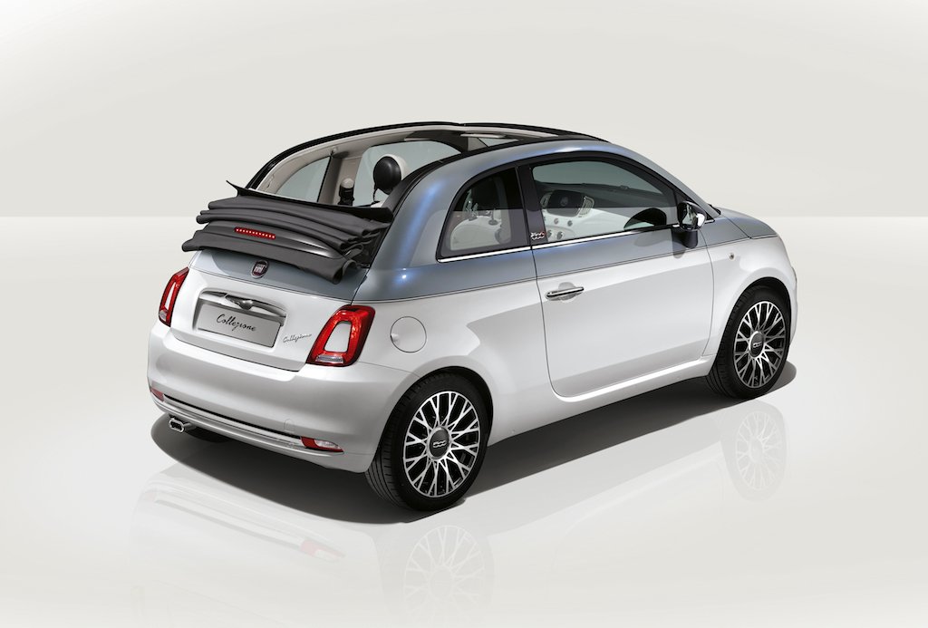 Disponibile sia come berlina sia nella più esclusiva versione cabrio, mostra dettagli di stile frutto di una reinterpretazione moderna dei tratti estetici distintivi dell’antesignana. Con cromature specifiche sul paraurti anteriore, sul cofano e sulle calotte degli specchietti anteriori. Di serie i cerchi in lega da 16″, mentre a richiesta si può optare per diverse livree: i nuovi bicolore “Primavera”, Bianco e Grigio, bicolore “Acquamarina”, Bianco e Verde e l’Avorio Taormina, in alternativa al Bianco Gelato e al Blu dipinto di Blu. A siglare infine l’eleganza della vettura il logo “Collezione” in corsivo che spicca cromato sul portellone posteriore. E la linea di bellezza grigio/bianco/grigio presente sia sulle vetture bicolore che monocolore.